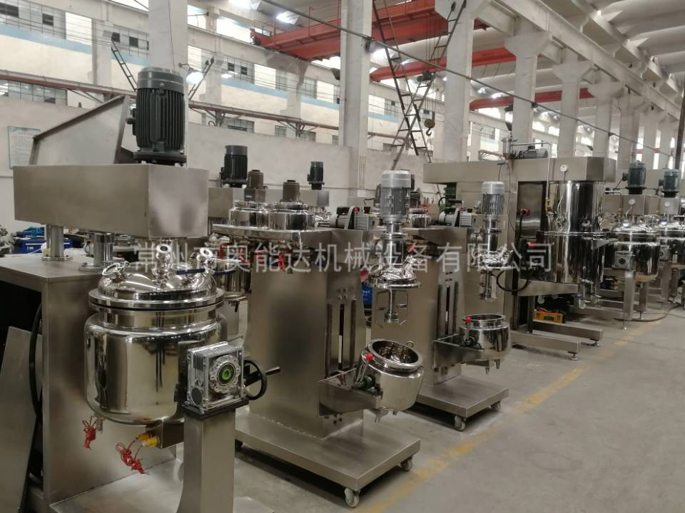 搅拌形式——主锅为框式搅拌加均质头,油水锅有锚式搅拌、分散盘以及浆叶式搅拌等。