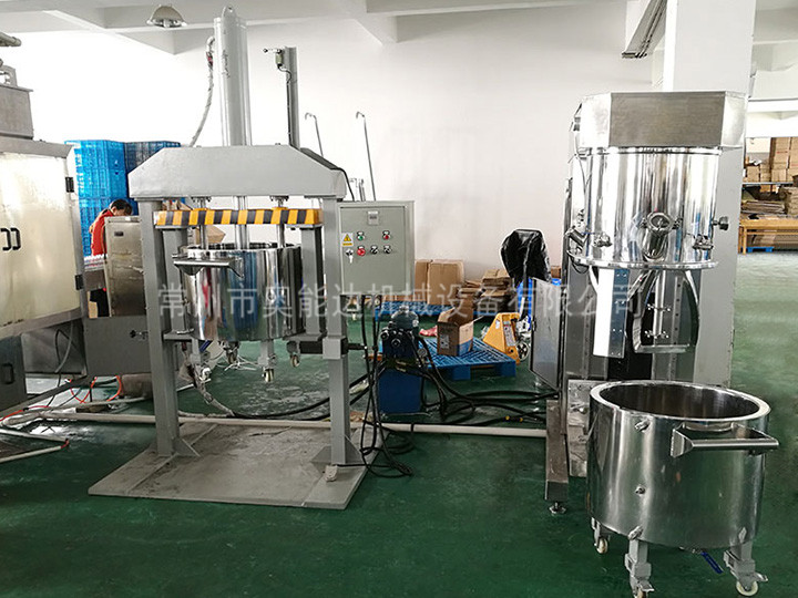 100L双行星混合搅拌机是一种对多种液体、粉体进行混合搅拌、溶解、分散、均质的高效搅拌设备,行星分散混合机(100L行星搅拌机)有高速、低速、活动刮板三轴,行星分散混合机(100L行星搅拌机)应用于高粘度电池、涂料、有机硅胶、油墨、染料、粘胶剂等。